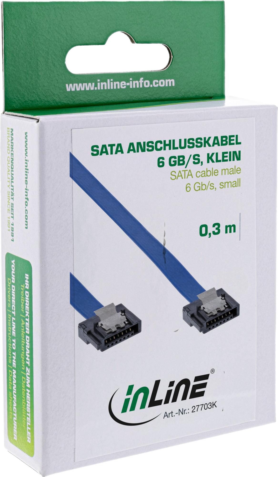 InLine® SATA 6Gb/s Anschlusskabel klein, mit Sicherheitslasche, 0,3m (27703K)
