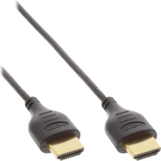 InLine® HDMI Mini Superslim Kabel A an A, High Speed HDMI® Cable with Ethernet, schwarz / gold, 0,5m (17555S)