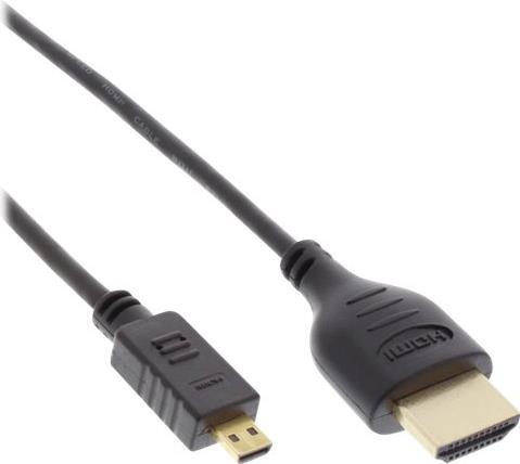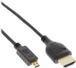 InLine® HDMI Mini Superslim Kabel A an D, High Speed HDMI® Cable with Ethernet, schwarz / gold, 1,5m (17511D)