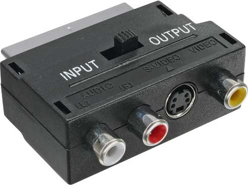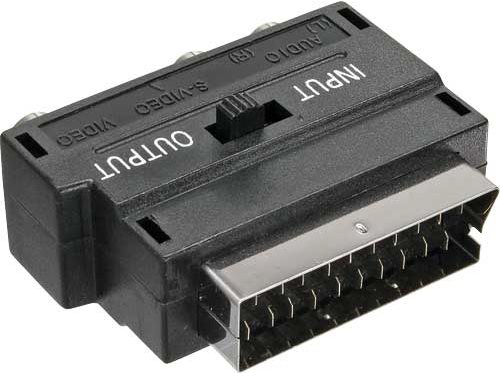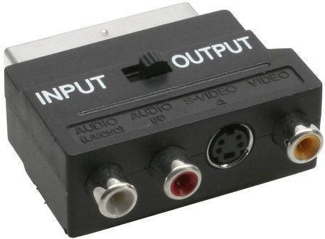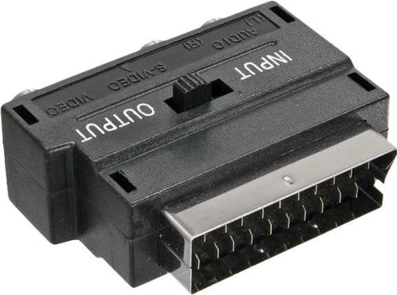 InLine® Adapter für den Anschluss von Audio-Video-Peripheriegeräten wie DVDs, Medienboxen, Spielkonsolen an die Scart-Buchse eines Fernsehers• 20pol Scart Stecker (in/out schaltbar) an 4pol mini DIN Buchse S-VHS und 3x Cinch Buchse (Audio R, Audio L und Video)• beidseitig verwendbar