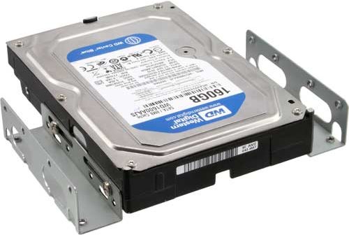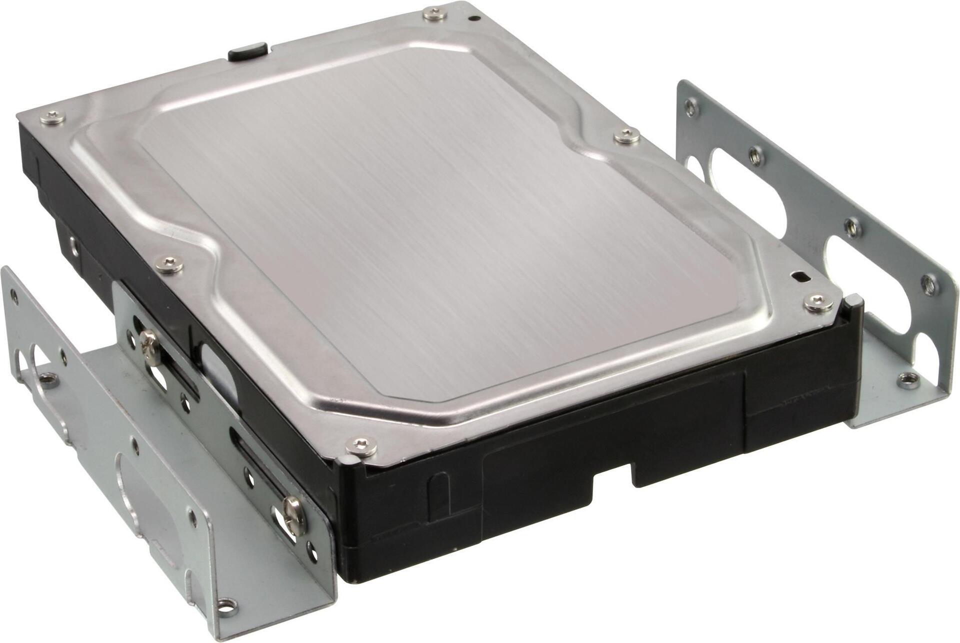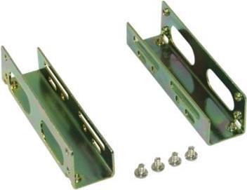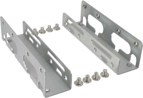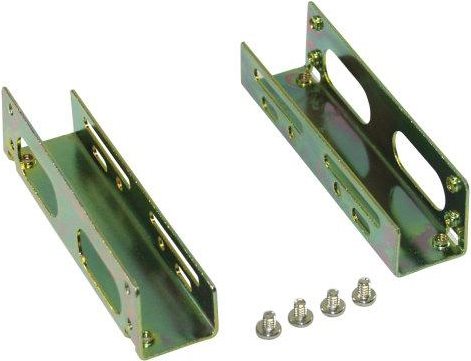 HDD Einbauschienen zum Einbau einer 8,89cm (3,5") Festplatte in einen 13,34cm (5,25") Schacht, 2 Metallschienen mit Schrauben. Die Winkel werden einfach an die Festplatte in die vorhandenen Gewinde geschraubt und in einen freien 13,34cm (5,25") Schacht des PC-Gehäuse eingebaut.