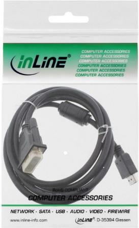 Dieses HDMI-DVI InLine®-Adapterkabel mit Ferritkern kann verwendet werden, um verschiedene DVI-Videoquellen mit einem digitalen Signal, wie Set-Top-Boxen, DVD-Player, BlueRay, Grafikkarten und andere, an HDMI-Audio/Video-Anzeigegeräte wie Monitore, Projektoren, Digitalfernseher und andere anzuschließen. Der in diesem Kabel eingesetzte Ferritkern erhöht die Rauschunterdrückung bei der Signalübertragung.• HDMI 19pin Typ-A Stecker auf DVI-D 18+1 Stecker