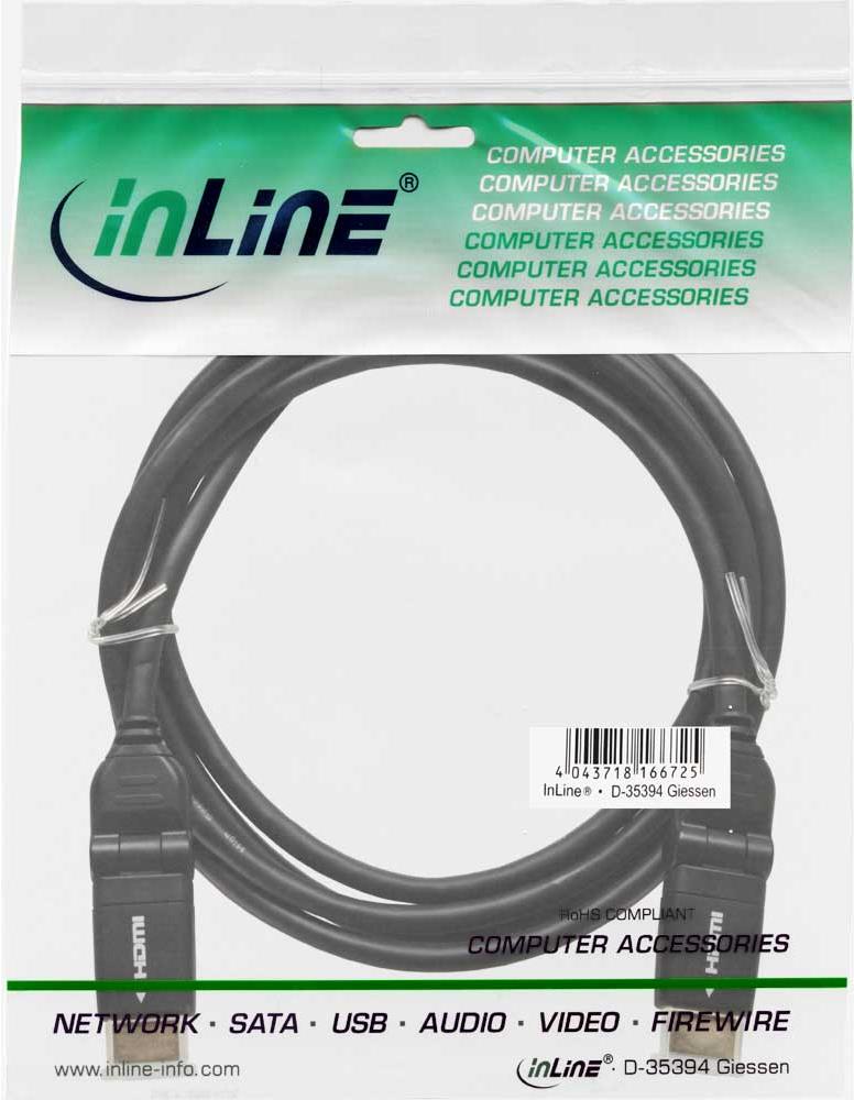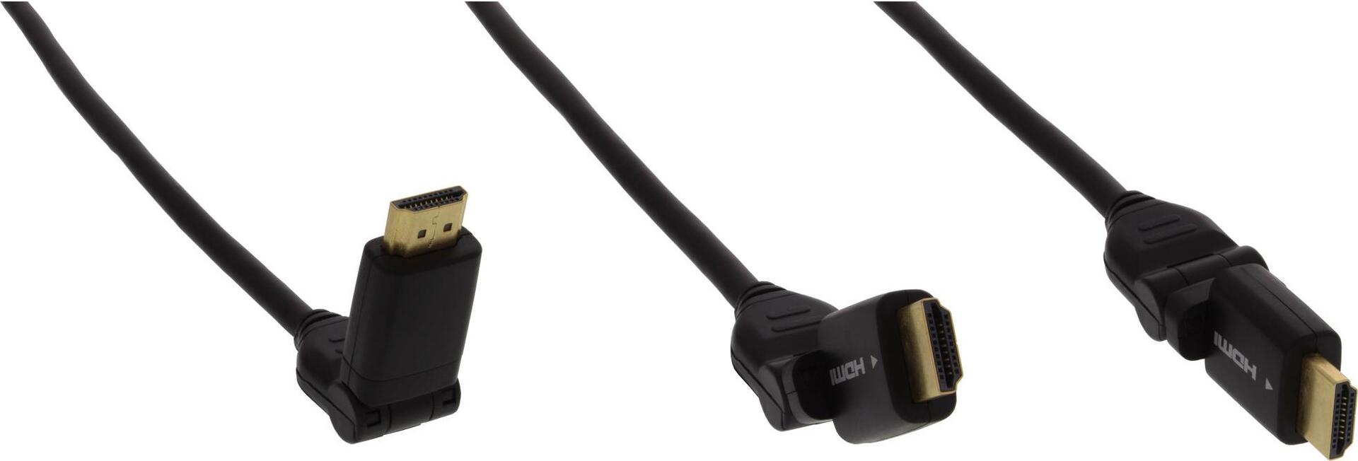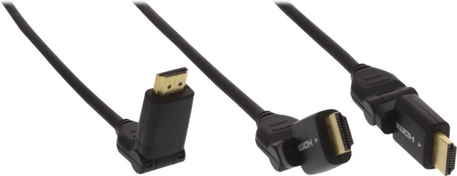 InLine® HDMI Kabel, HDMI-High Speed mit Ethernet, Stecker / Stecker, verg. Kontakte, schwarz, flexible Winkelstecker, 0,5m (17055W)