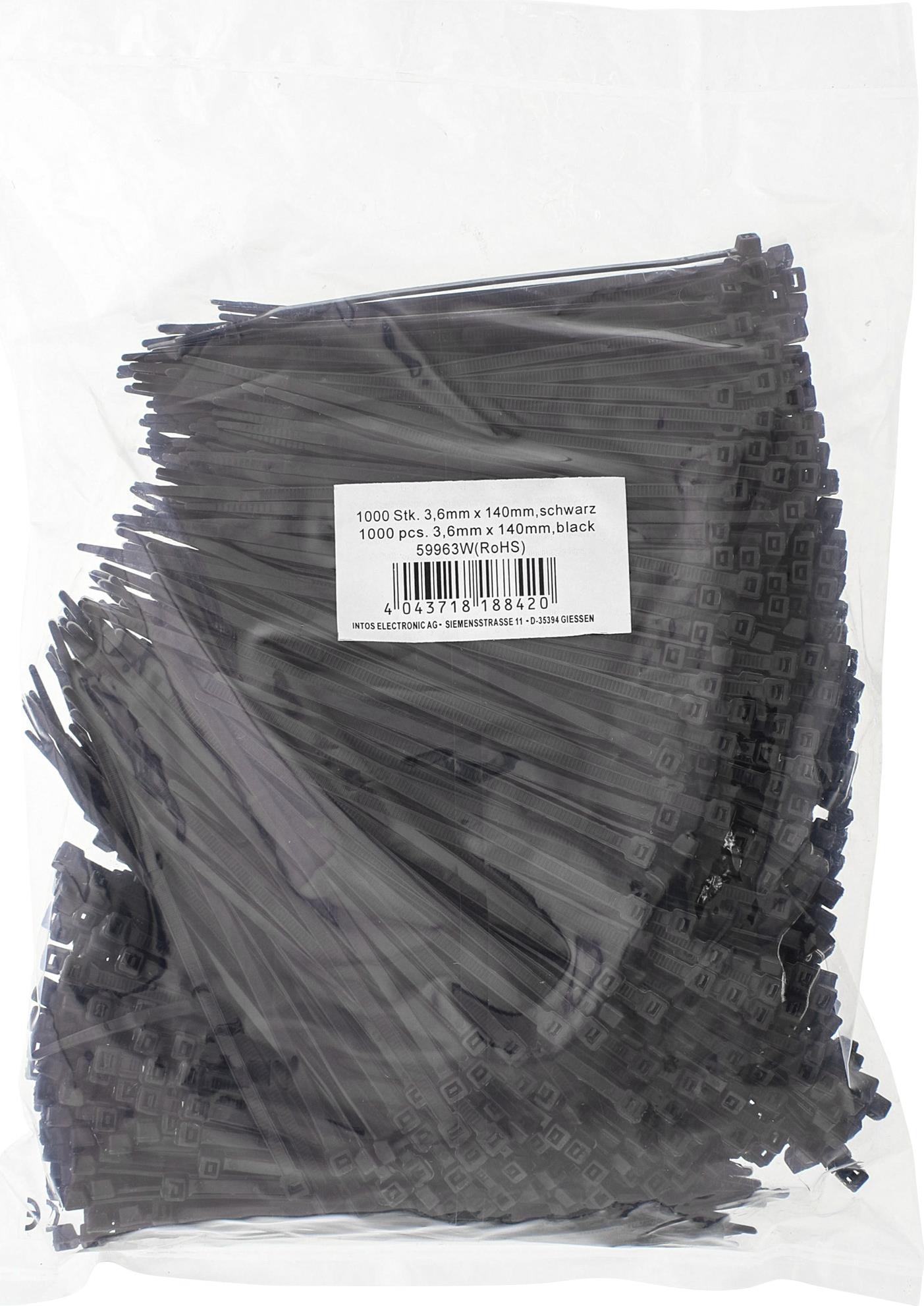 InLine Kabelbinder, Länge 140mm, Breite 3,6mm, schwarz, 1000 Stück, bulk (59963W)