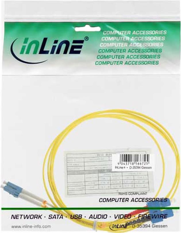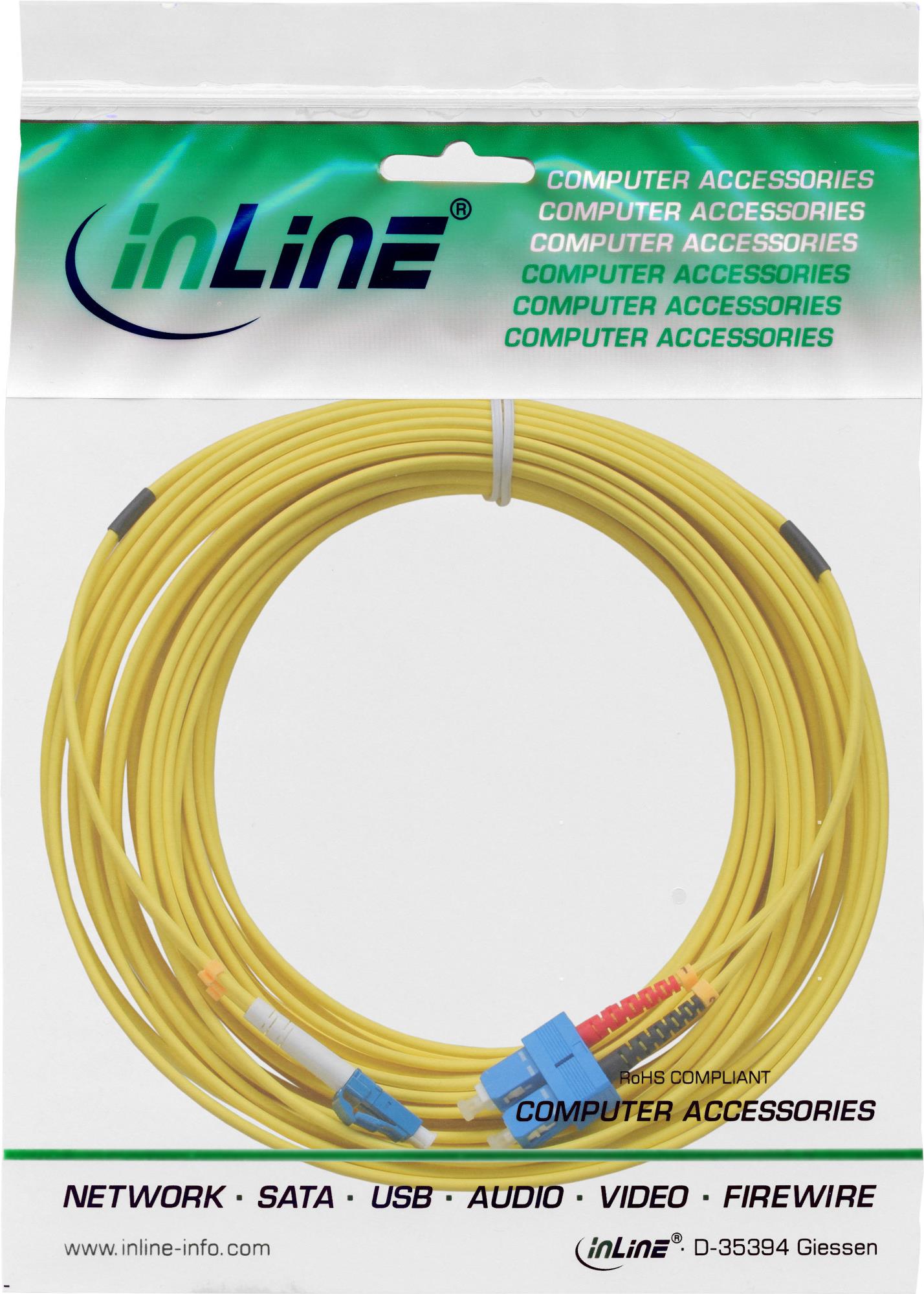 InLine - Patch-Kabel - LC Single-Modus (M) bis SC Single-Modus (M) - 50cm - Glasfaser - 9/125 Mikrometer - OS2 - halogenfrei - Gelb (88656S)