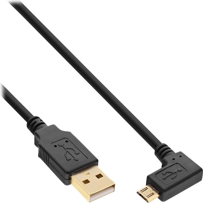 InLine® Micro-USB 2.0 Kabel, USB-A Stecker an Micro-B Stecker gewinkelt, vergoldete Kontakte, 1,5m (31715T)