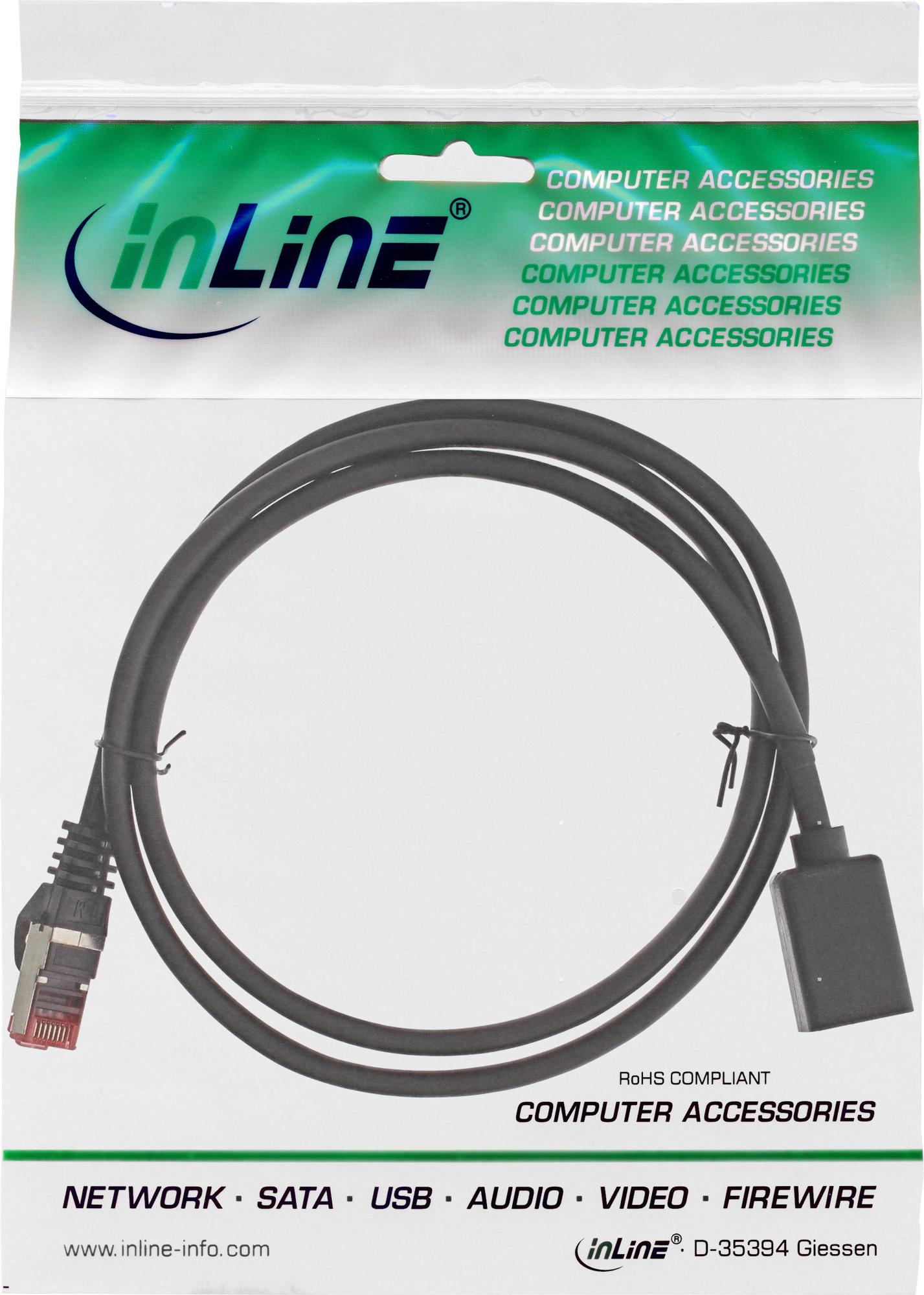 InLine - Patch-Verlängerungskabel - RJ-45 (M) bis RJ-45 (W) - 2,0m - SFTP, PiMF - CAT 6 - halogenfrei, geformt, ohne Haken - Schwarz (76902X)