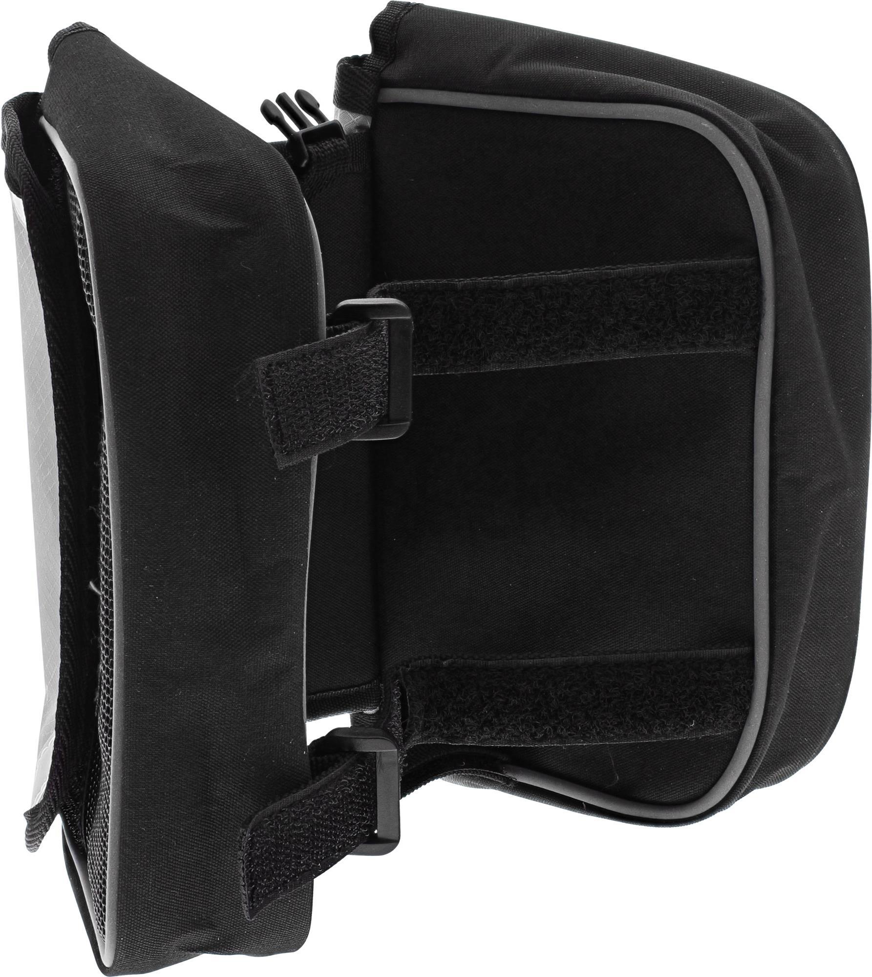 Diese Rahmentasche kann auf jedem Fahrrad schnell und einfach durch Klettverschlüsse befestigt werden.Sie besteht aus wasserabweisendem Oxford-Nylon und besitzt insgesamt drei Taschen, zwei davon sind seitlich angebracht und ideal geeignet für Ihre Geldbörse oder ein kleines Notfallset. Die dritte Tasche besitzt ein Sichtfenster mit Touchscreen-Support für Ihr Smartphone und ermöglicht Ihnen dadurch eine einfache und sichere Bedienung Ihres Smartphones, ohne es aus der Tasche nehmen zu müssen.Zusätzlich lässt sich die Smartphone-Tasche von der Fahrradtasche entfernen und separat nutzen.• Material: Oxford-Nylon• Smartphone-Tasche: 17x9x1,7cm• 2 Seitentaschen: 16x11x4cm• WasserabweisendProdukttext[/head]Diese Rahmentasche kann auf jedem Fahrrad schnell und einfach durch Klettverschlüsse befestigt werden.Sie besteht aus wasserabweisendem Oxford-Nylon und besitzt insgesamt drei Taschen, zwei davon sind seitlich angebracht und ideal geeignet für Ihre Geldbörse oder ein kleines Notfallset. Die dritte Tasche besitzt ein Sichtfenster mit Touchscreen-Support für Ihr Smartphone und ermöglicht Ihnen dadurch eine einfache und sichere Bedienung Ihres Smartphones, ohne es aus der Tasche nehmen zu müssen.Zusätzlich lässt sich die Smartphone-Tasche von der Fahrradtasche entfernen und separat nutzen.Material: Oxford-Nylon.Smartphone-Tasche: 17x9x1.7cm.2 Seitentaschen: 16x11x4cm.Wasserabweisend.[head]Hauptmerkmale
