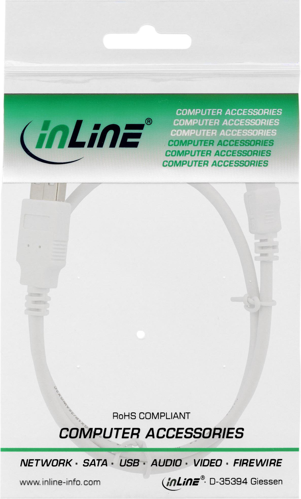 InLine® USB 2.0 Mini-Kabel, USB A Stecker an Mini-B Stecker (5pol.), weiß, 1m (31810W)