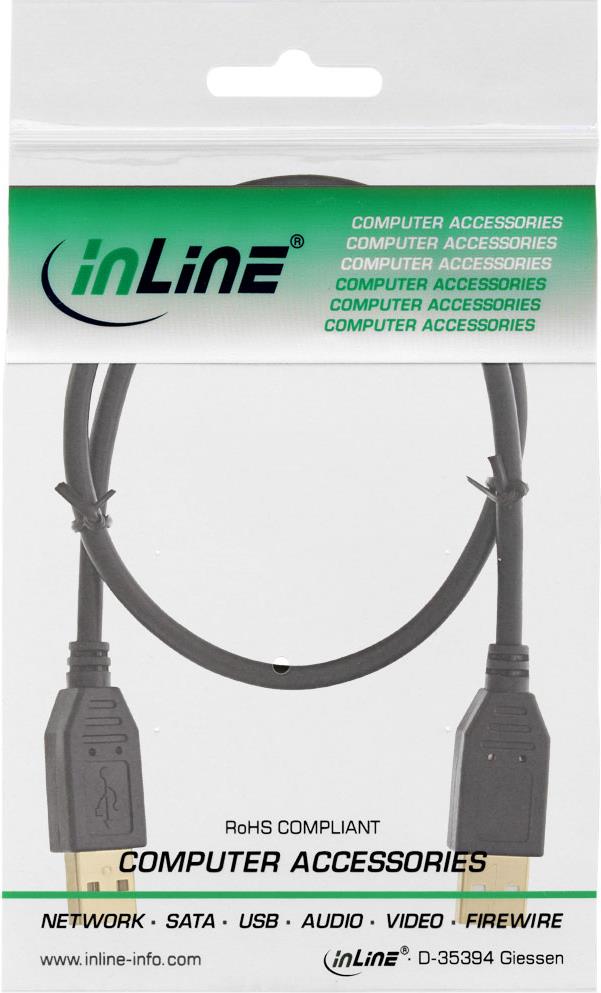 InLine® USB 2.0 Kabel, A an A, schwarz, Kontakte gold• USB Stecker Typ A an Stecker Typ A