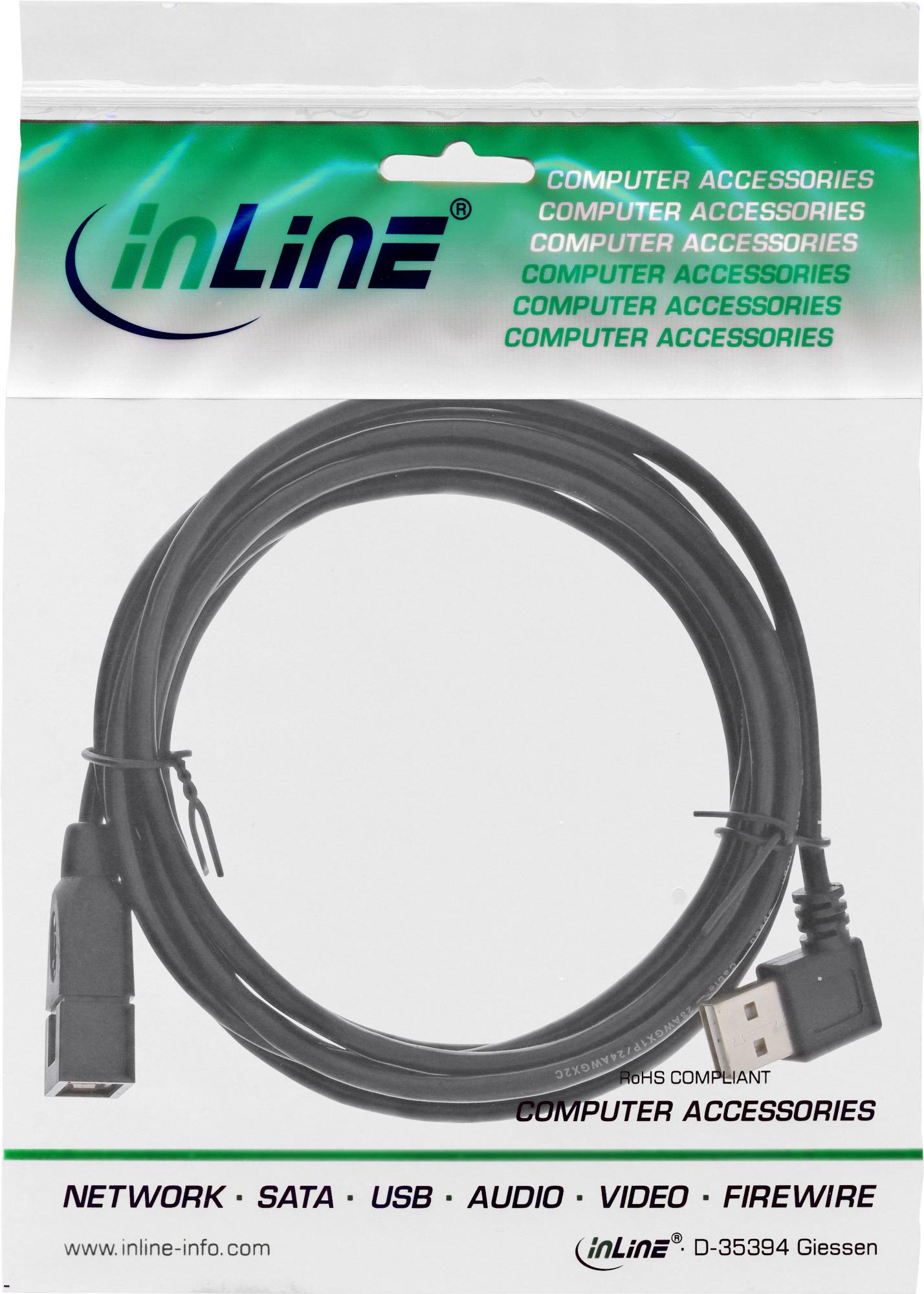 InLine USB A/USB A M/F 1m - USB A - USB A - Männlich/weiblich - Abgewinkelt - Gerade - Schwarz (34610R)