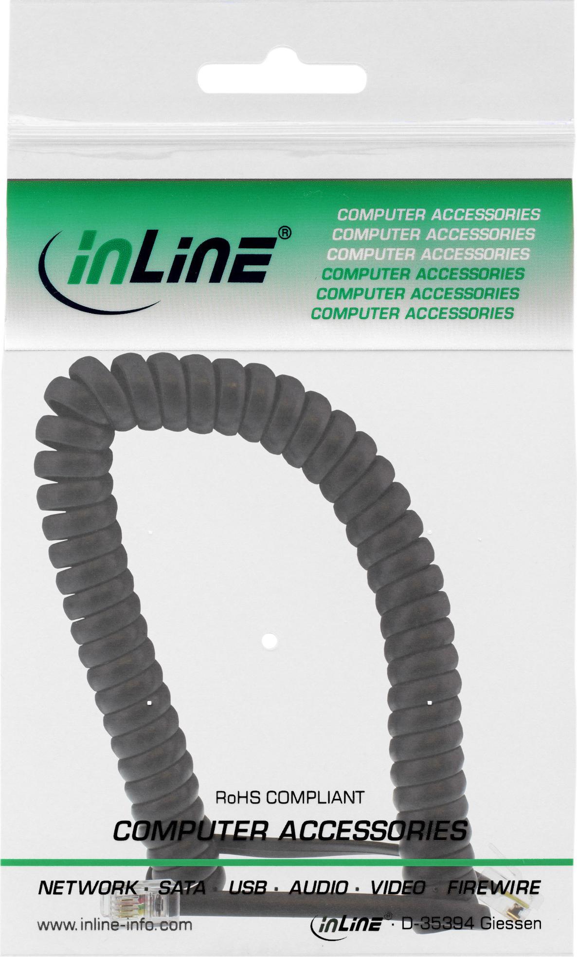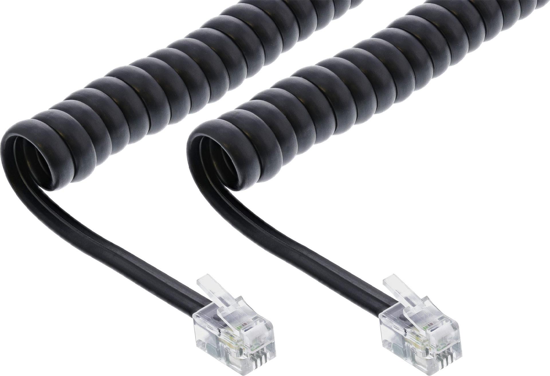 InLine® Spiralkabel, RJ10 St/St, max. 2m schwarz, 1:1 belegt (18893A)