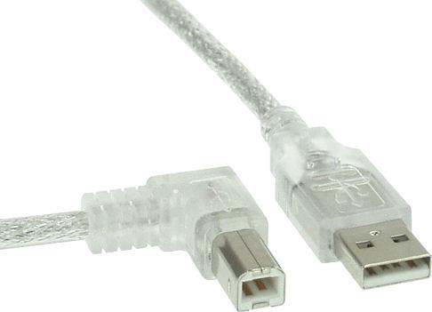 InLine® USB 2.0 Kabel, A an B links abgewinkelt, transparent, 0,5m (34517L)