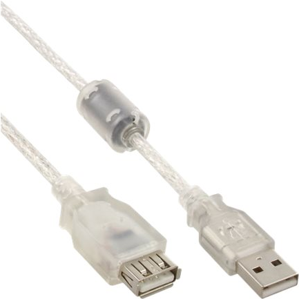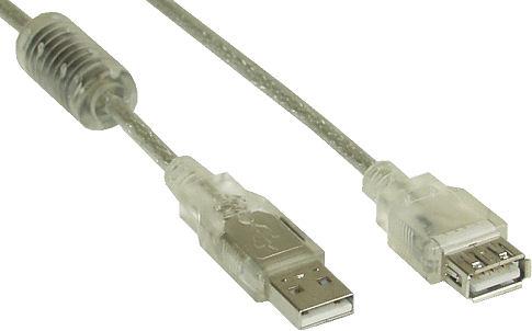 InLine® USB 2.0 Verlängerung, St/Bu Typ A, transparent, mit Ferritkern, 1m (34610Q)