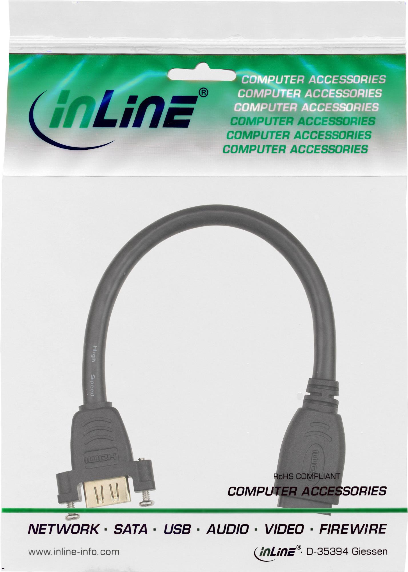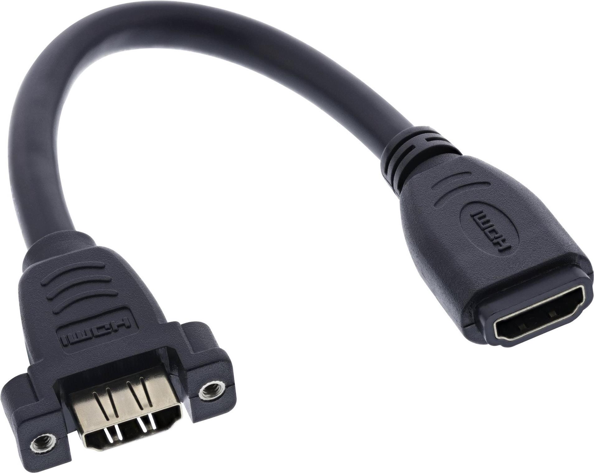 InLine® HDMI Adapterkabel zum Einbau, HDMI A Buchse/Buchse, vergoldete Kontakte, 0,2m (17600R)