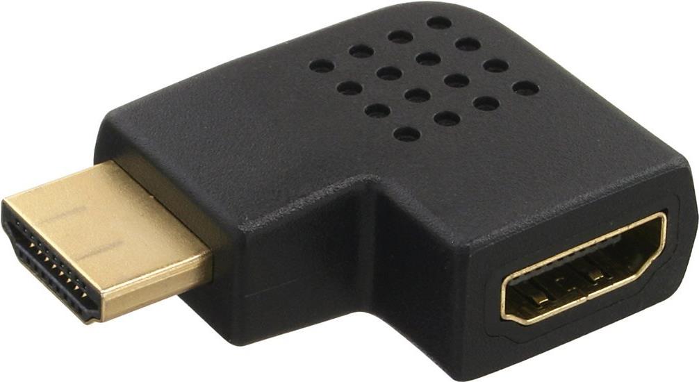 HDMI Adapter 19pol. Stecker / Buchse, gewinkelt, z. B. für schwer zugängliche Buchsen von LCD/Plasma TV-Geräten, die an der Wand montiert sind.• HDMI Typ A 19pol. Stecker an Buchse