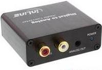 Dieser 192 kHz Digital zu Analog Audio-Konverter wandelt und verstärkt digitale Audiosignale (optisch/koaxial) zu analogen Audio Stereo-Signalen. Für folgende Geräte geeignet: TV, CD/DVD/Blu-Ray-Player usw., die einen digitalen Cinch- oder optischen Ausgang haben.• Maximal 192 kHz / 24 bit-Audiosignal• Optisches / koaxiales Eingangssignal S/PDIF• Stereo-Cinch-Audioausgang• 3,5mm Klinke Buchse Stereo Audioausgang• Stromzufuhr über Micro-USB möglich• Unterstützt PCM Format (nicht unterstützt werden DOLBY und DTS Signale)• Chip: Cirrus Logic - CS8416-CZZ (TSSOP-28)
