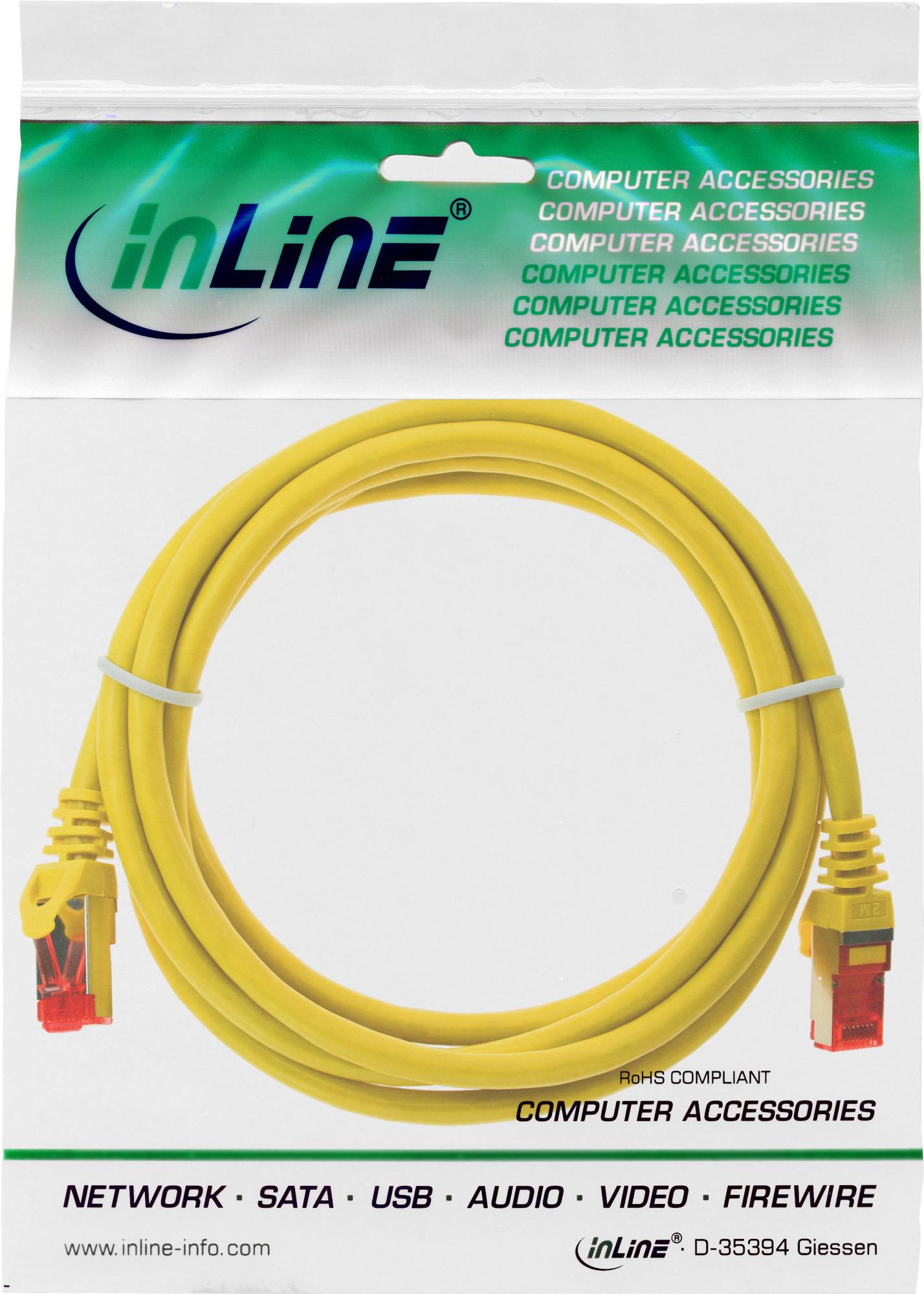 InLine - Patch-Kabel - RJ-45 (M) - bis - RJ-45 (M) - 1,0m - SFTP, PiMF - CAT 6 - gepresst, mit Knickschutz - Gelb (76111Y)