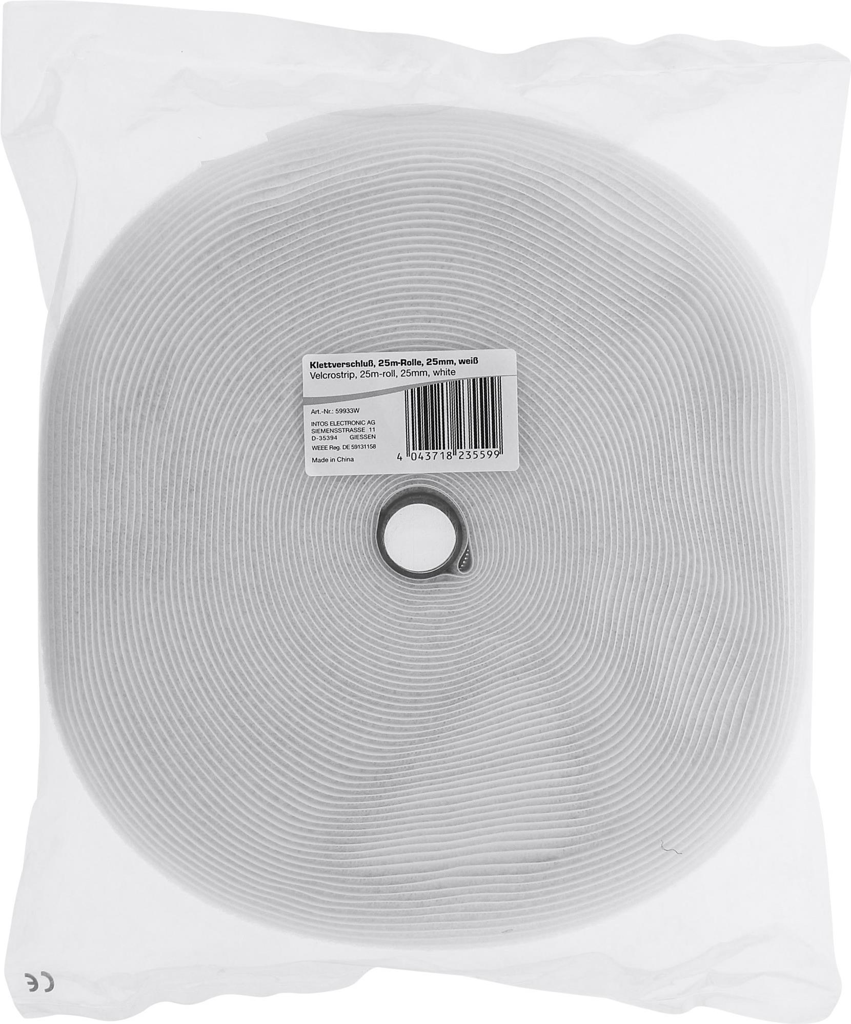 InLine® Kabelbinder, Klettverschluß Band, 25 Meter, 25mm, weiß (59933W)