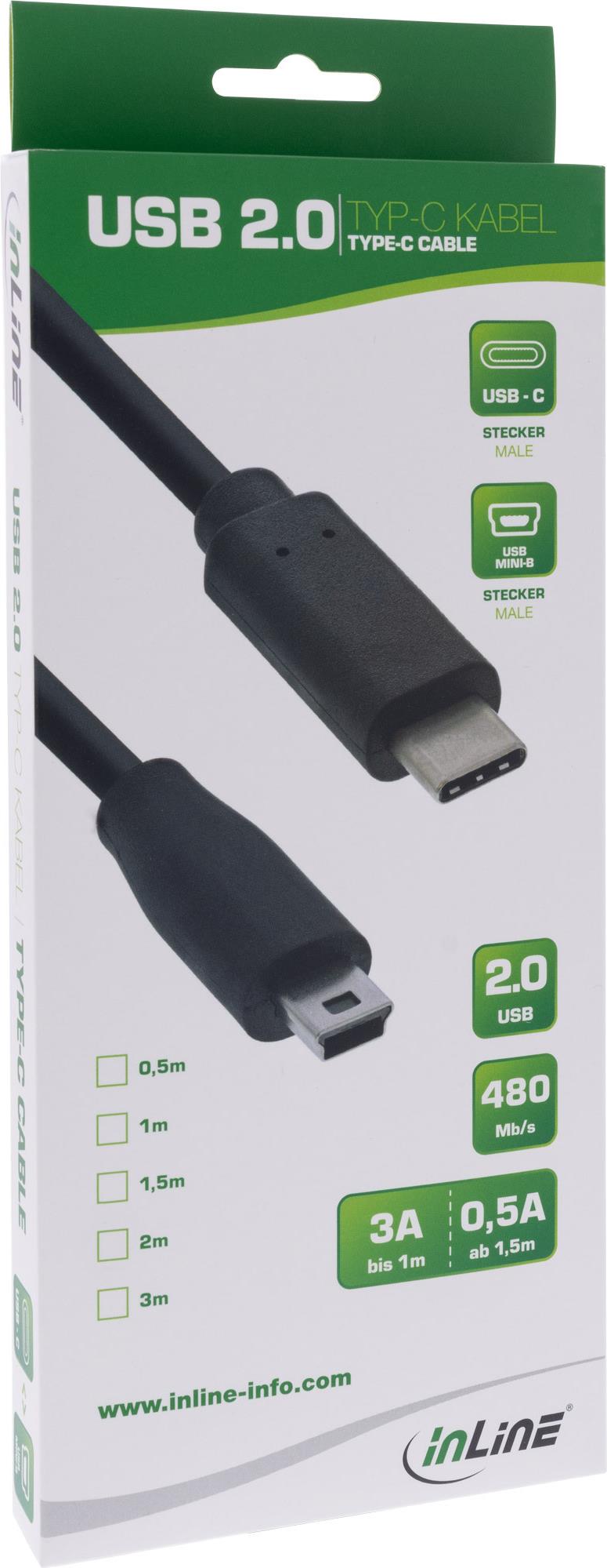 InLine - USB-Kabel - 5-poliger mini-USB (M) bis USB-C (M) - USB2.0 - 0,5 A - 2,0m - Schwarz (35752)