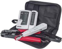 Ausstanz-Werkzeug (LSA), Crimpwerkzeug, Kabel-Abisolierzange, Netzwerktester, Aufbewahrungstasche |