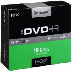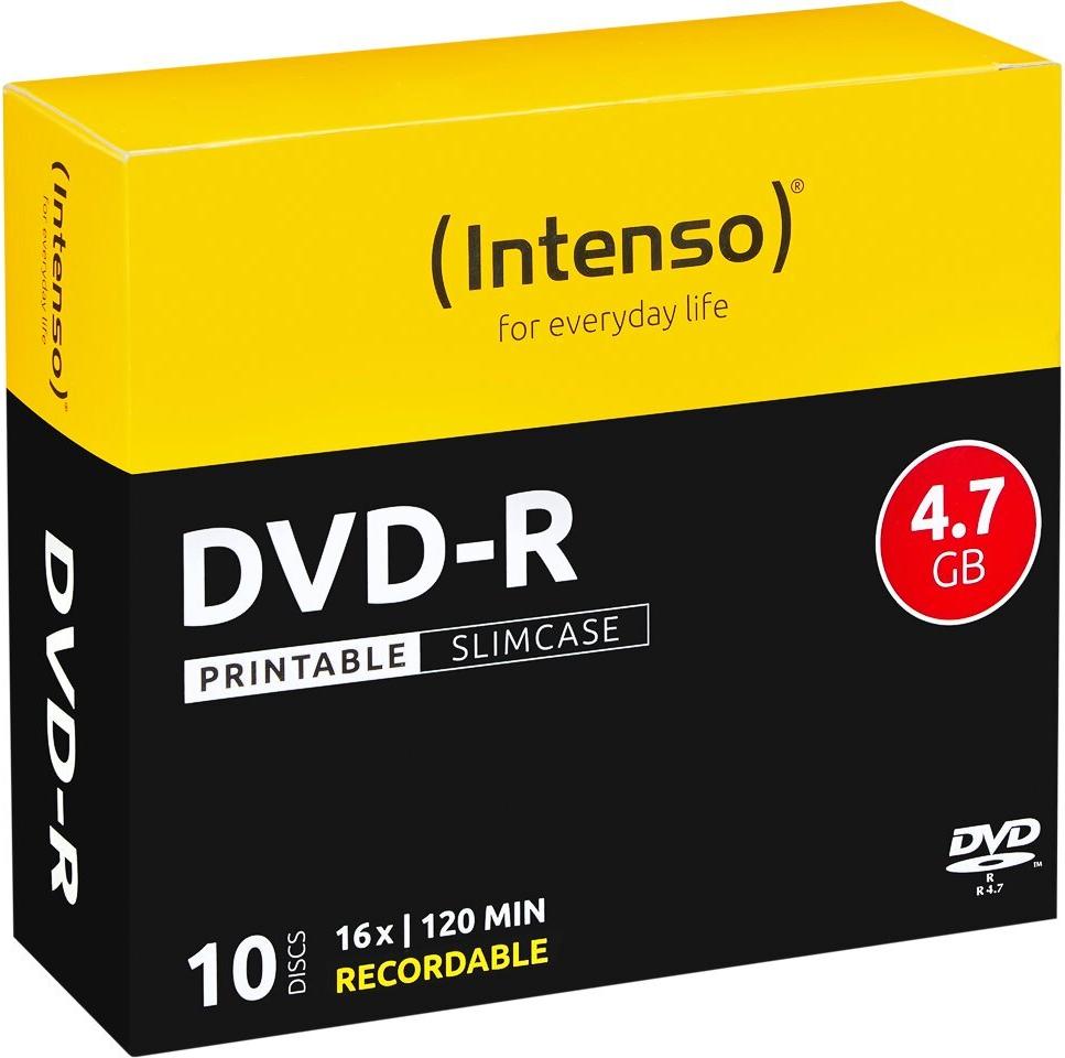 Intenso - 10 x DVD-R (G) - 4,7GB (120 Min.) 16x - mit Tintenstrahldrucker bedruckbare Oberfläche - Slim Jewel Case - Speichermedium (4801652)