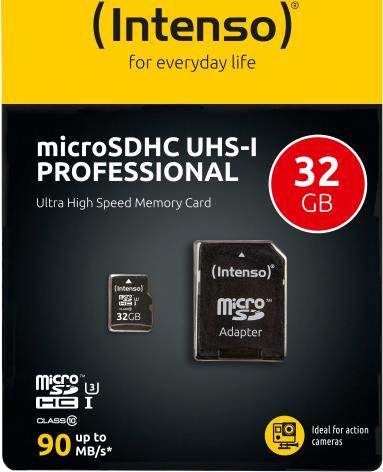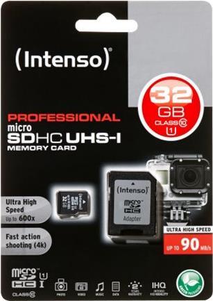 Intenso 3433480 - 32 GB - Micro Secure Digital High-Capacity (MicroSDHC) - 90 MB/s - Schwarz - 1,5 cm - 1,1 cm (3433480)