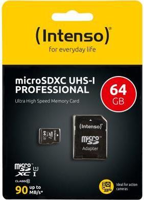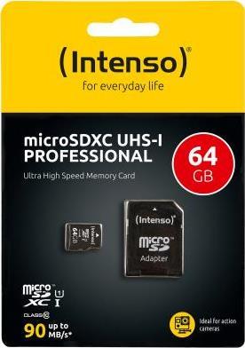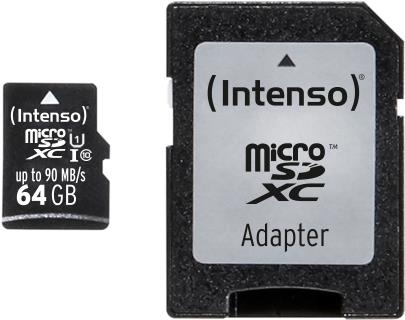 Intenso - Flash-Speicherkarte (microSDXC-an-SD-Adapter inbegriffen) - 64GB - UHS Class 1 / Class10 - microSDXC UHS-I (3433490)