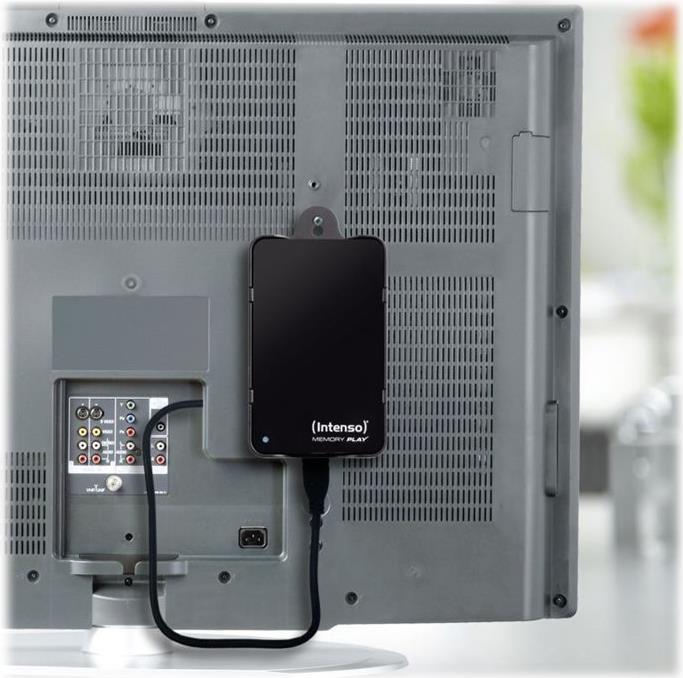 Ich habe die Festplatte an meinem Panasonic-TV angeschlossen und bin bis jetzt sehr zufrieden. Die Festplatte wurde vom TV sofort erkannt und lässt sich auch hervorragend bedienen, Aufnahmen starten sehr schnell. Nur die weiße LED an der Festplatte zeigt den Betrieb der Festplatte an, ein Betriebsgeräusch ist nicht zu hören. Die Festplatte hat ein dezentes schwarzes Gehäuse und ist angenehm klein und handlich. Ich habe sie einfach hinter dem TV auf dem Möbel liegen, eine Wandbefestigung wäre zwar möglich gewesen, darauf habe ich aber verzichtet. Ich kann die Intenso-Festplatte auf jeden Fall weiterempfehlen- sie bietet ein hervorragendes Preis-Leistungsverhältnis und arbeitet bis jetzt ohne Probleme.
