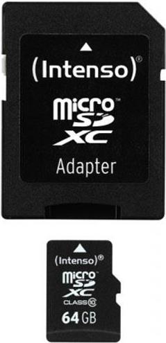 • Intenso Micro SDXC Class 10 64GB Speicherkarte mit Adapter (3413490)