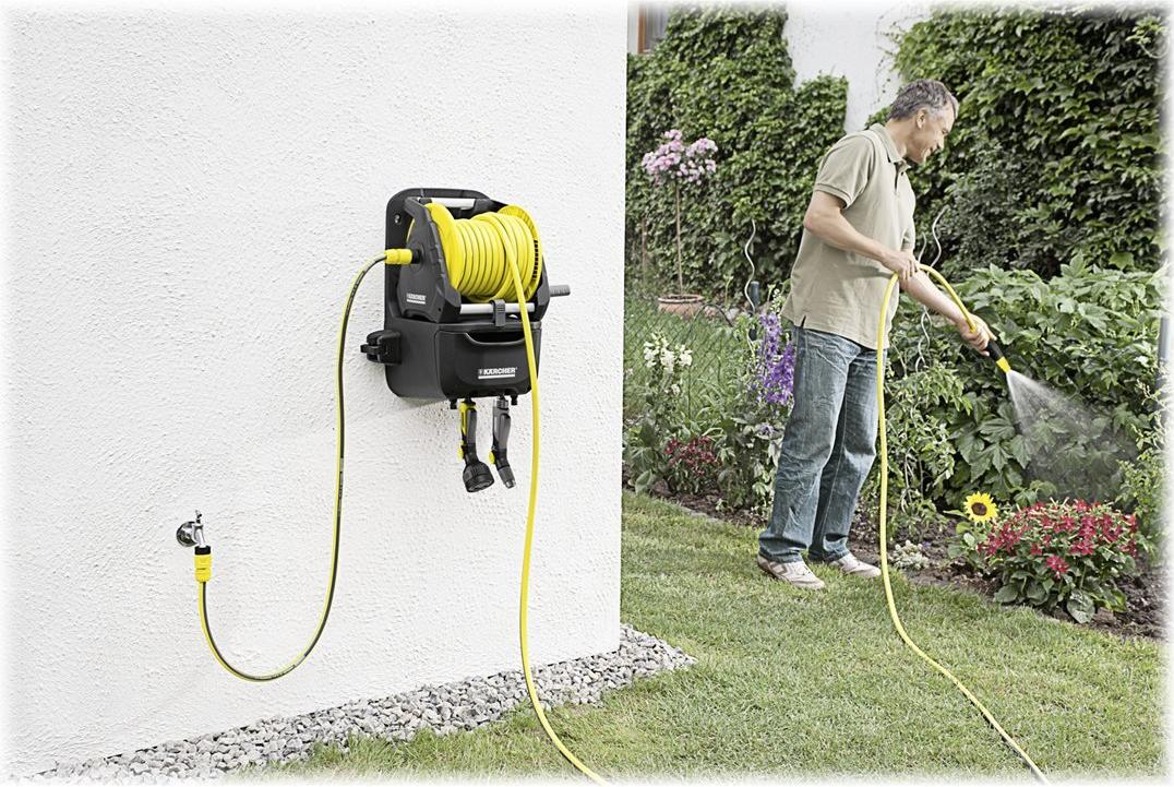Die kompakte Bewässerungsstation! Der fertig montierte Premium Schlauchträger HR 7.315 Kit ½" für mobilen oder stationären Einsatz eignet sich perfekt zur Bewässerung kleiner bis mittelgroßer Flächen und Gärten. Dank der Vielzahl an Verstaumöglichkeiten ist endlich alles an einem Platz untergebracht. Die Ausstattungsdetails: abnehmbarer Schlauchtrommel (2 in 1), Aufbewahrungsmöglichkeit für Spritzen und Brausen, geräumige Verstaubox für Gartenhandschuhe, -scheren, -schaufeln etc. Inklusive Wandhalterung, 15 m ½" PrimoFlex Schlauch, Spritze, 3 x Standardschlauchkupplung, 1 x Standardschlauchkupplung mit Aqua Stop, G3/4-Hahnanschluss und G1/2 Reduzierstück sowie zusätzlicher Fixiermöglichkeit für Gießstäbe. Denn Bewässern mit Kärcher ist Bewässerung mit Köpfchen.
