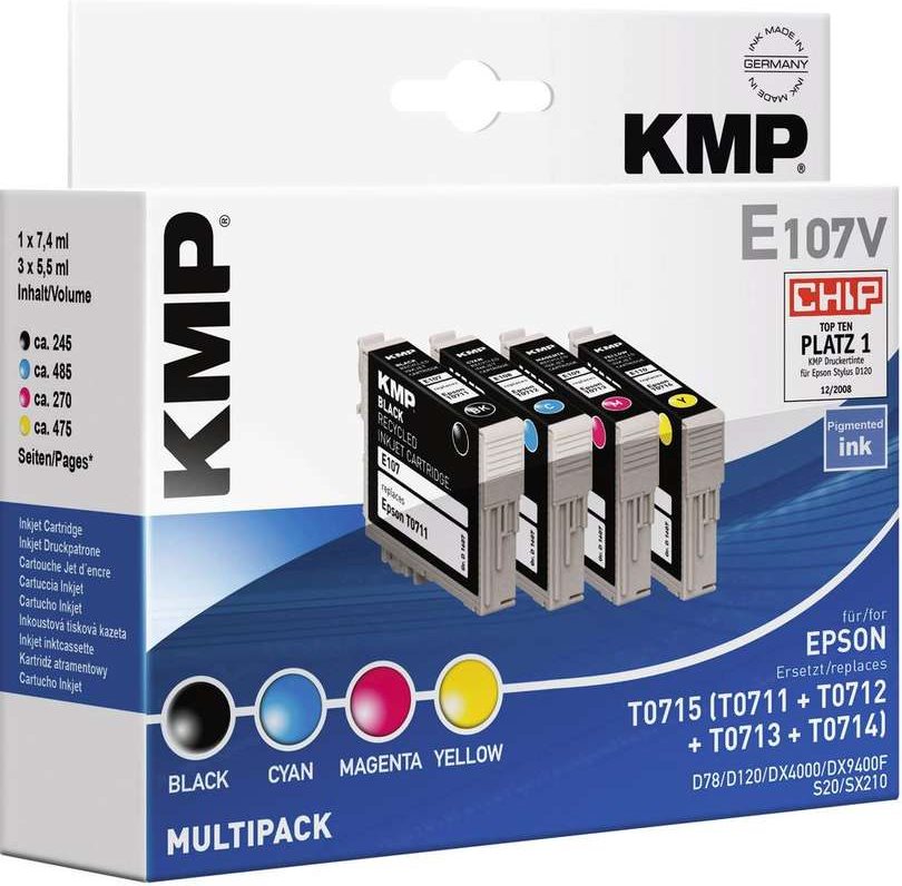 KMP Tinte für EPSON Stylus D78/DX4000/DX4050, Vorteilspack Inhalt: 1 x schwarz, 7,4 ml, je 1 x cyan, magenta (1607,0005)