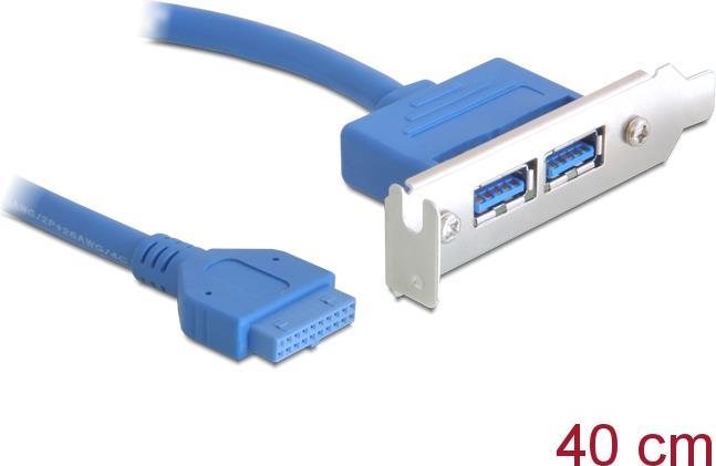 DeLOCK Slotblech USB3.0 Pin Header 19 Pin 1 x intern > 2 x USB3.0-A Buchse extern Low Profile - Slotblech (82976)