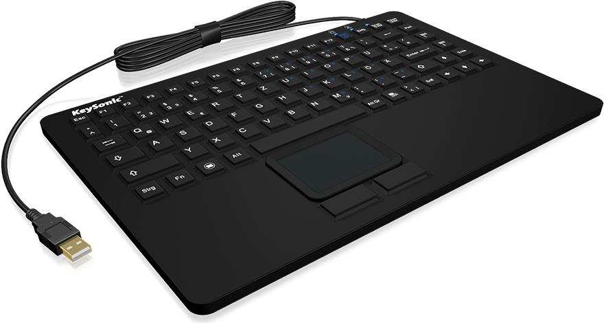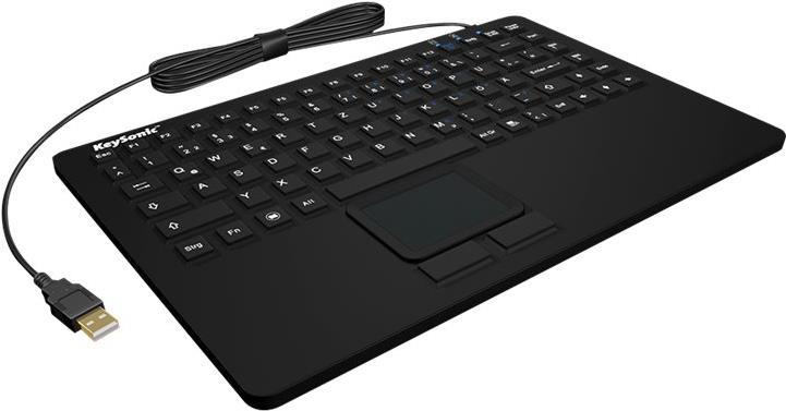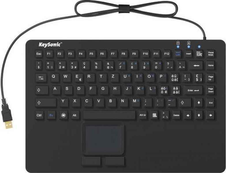Diese Keysonic Tastatur verfügt über ein ausgezeichnetes, taktiles Schreibgefühl und ist wasserdicht nach IP68 und kann somit sogar in Flüssigkeiten eingetaucht werden. Die Oberfläche der Keysonic Tastatur ist mit einer speziellen Oberflächenversiegelung ausgestattet und weist daher eine gute mechanische und chemische Beständigkeit auf, so dass mit Standard Desinfektionsmitteln gearbeitet werden kann, ohne dass die Tasten ihre Beschriftung verlieren. Das integrierte Touchpad ermöglicht den Einsatz der Keysonic Tastatur ohne externe, zusätzliche Maus. Dies ist sowohl ein Kosten- als auch ein praktischer Vorteil, denn das Touchpad lässt sich sowohl mit als auch ohne Gummihandschuhe einwandfrei bedienen.