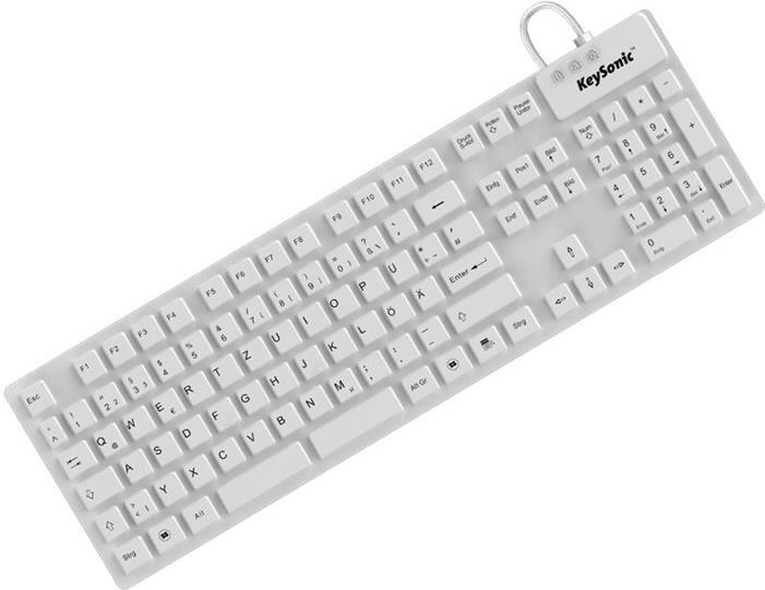 Diese Keysonic Tastatur verfügt über ein ausgezeichnetes, taktiles Druckgefühl und ist wasserdicht und kann somit sogar in Flüssigkeiten eingetaucht werden. Die Oberfläche der Keysonic Tastatur ist mit einer speziellen Oberflächenversiegelung ausgestattet und weist daher eine gute mechanische und chemische Beständigkeit auf, so dass mit Standard Desinfektionsmitteln gearbeitet werden kann, ohne dass die Tasten ihre Beschriftung verlieren.Produkttext[/head]Wasserdichte SilikontastaturErgonomisch gestaltete Silikonummantelte-Tastatur mit 105 Tasten. Unsere Keysonic Tastatur verfügt über ein ausgezeichnetes, taktiles Druckgefühl und ist wasserdicht nach IP68 und kann somit sogar in Flüssigkeiten eingetaucht werden.VersiegeltDie Oberfläche der KSK-8030IN ist mit einer speziellen Oberflächenversiegelung ausgestattet und weist daher eine gute mechanische und chemische Beständigkeit auf, so dass mit Standard Desinfektionsmitteln gearbeitet werden kann, ohne dass die Tasten ihre Beschriftung verlieren.SterilDie KSK-8030IN ist antimikrobisch und fungistatisch und wirkt so dem Wachstum von mikrobiellen Pilzen, Schimmel, Sporen und Fungus entgegen. Außerdem ist sie 100% wasserdicht und erfüllt die NEMA 4X und IP68 Spezifikationen.Problemlos VerbundenDie KSK-8030IN wird über einen klassischen USB 2.0 Anschluss mit dem PC verbunden und ist dadurch so gut wie überall einsetzbar wo mit Computern gearbeitet wird.[head]Hauptmerkmale