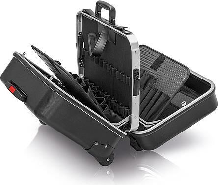 - Herausnehmbares Dokumentenfach und herausnehmbare Werkzeugtafel mit 13 Werkzeugtaschen