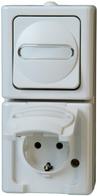 Kombination senkrecht Schalter/Schutzkontaktsteckdose AP-Feuchtraum BLUE ELECTRIC arktis (130802000)