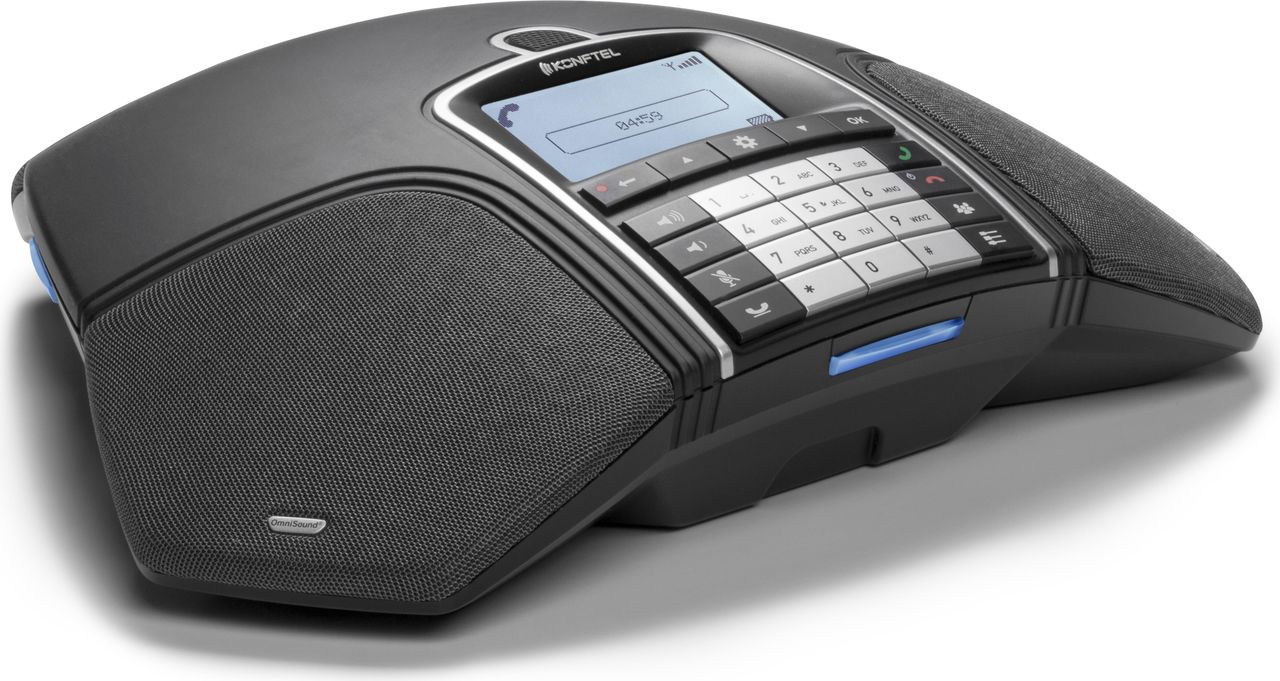 Mit dem schnurlosen Konftel 300Wx Konferenztelefon können Sie überall dort Konferenzen abhalten, wo es Ihnen am besten passt – ohne sich Gedanken über Netzwerk und Steckdosen machen zu müssen. Die schnurlose DECT-Technologie ist zuverlässig und sicher. Konftel 300Wx mit analoger Konftel DECT-Basisstation für einen analogen Anschluss. Stecken Sie einfach die Basisstation in die Telefonbuchse und schon ist Ihre kabellose Konferenzlösung mit bis zu sieben verbundenen Telefonen einsatzbereit.