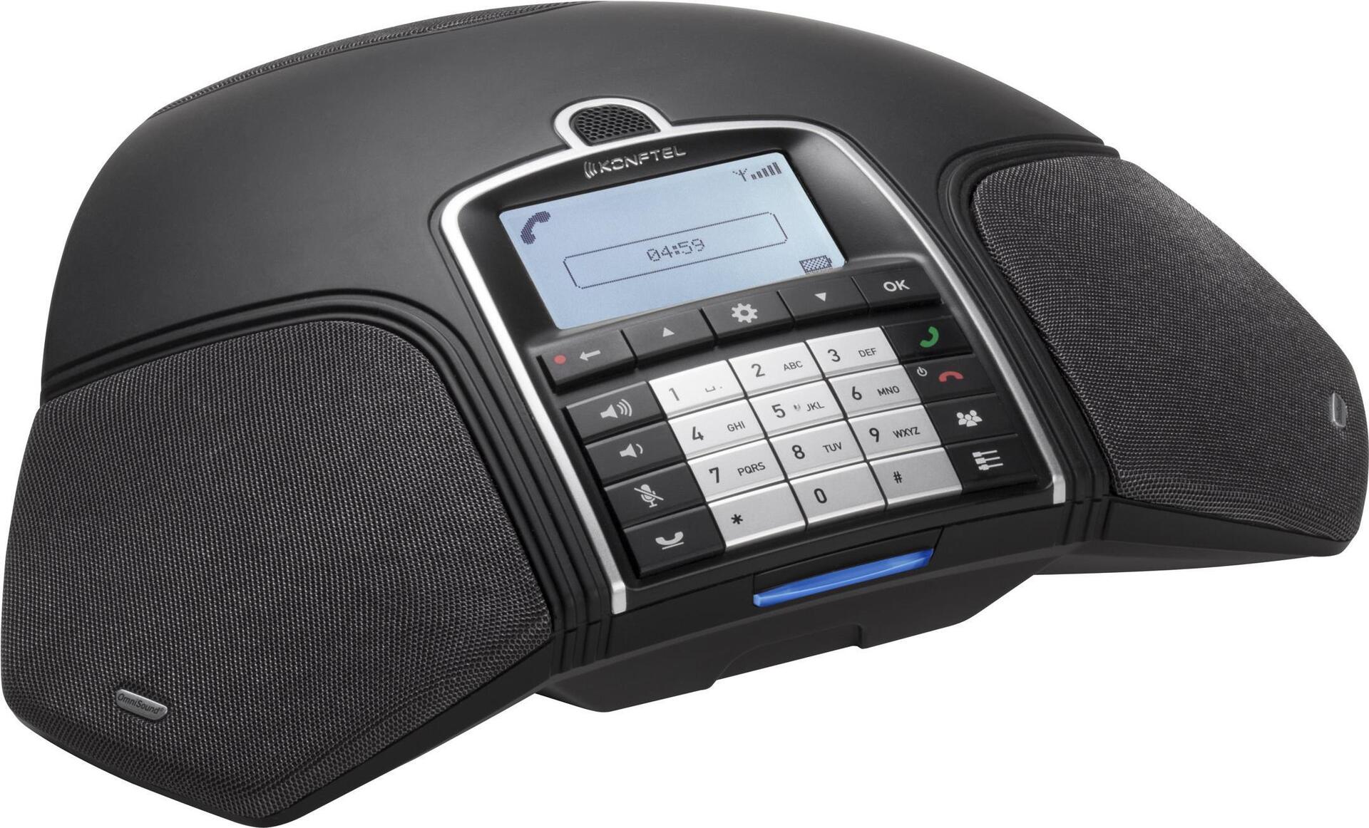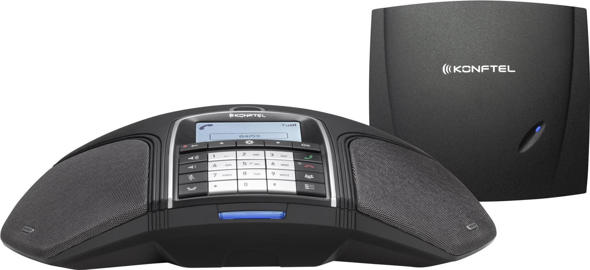 Mit dem schnurlosen Konftel 300Wx Konferenztelefon können Sie überall dort Konferenzen abhalten, wo es Ihnen am besten passt - ohne sich Gedanken über Netzwerk und Steckdosen machen zu müssen. Die schnurlose DECT-Technologie ist zuverlässig und sicher. Konftel 300Wx mit analoger Konftel DECT-Basisstation für einen analogen Anschluss. Stecken Sie einfach die Basisstation in die Telefonbuchse und schon ist Ihre kabellose Konferenzlösung mit bis zu sieben verbundenen Telefonen einsatzbereit.