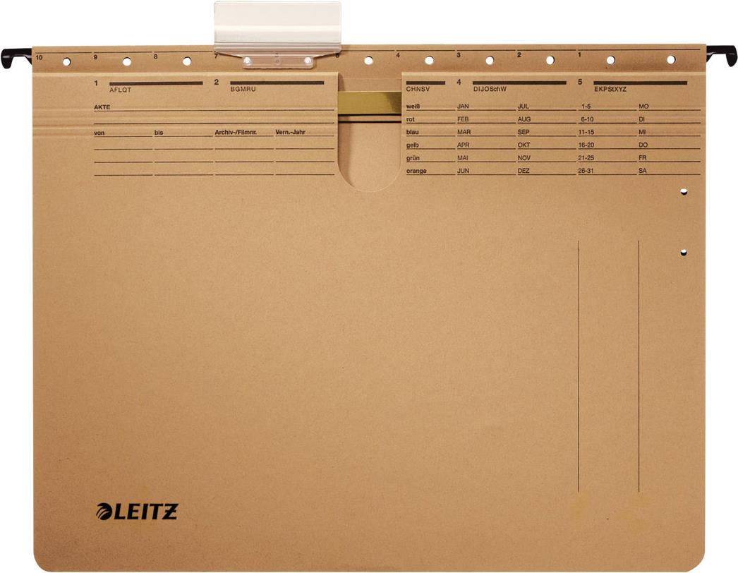 LEITZ ALPHA Hängehefter, A4, Amtsheftung, natron -------------- für den Markt: D / L / A / CH --------------- Natronkarton, 250 g/qm, Daumenausschnitt, fest eingezacktes Aufreihband, Maße nach DIN 821, inkl. Reiter und Beschriftungsschildchen gepackt zu 25 Stück (1994-00-00)