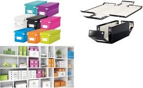 Aufbewahrungsbox für CDs. Leichtes Aufbauen dank praktischer Druckknöpfe und ebenso schnelles Zusammenklappen zum platzsparenden Verstauen. Etikettenhalter zur Kennzeichnung. Hergestellt aus stabilem, hochwertigem recyceltem Karton. Laminierte Oberfläche für einen besseren und dauerhaften Schutz. Modernes und zeitgemäßes Design für Zuhause oder fürs Büro. Volumen 5 Liter.