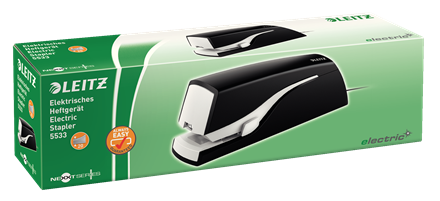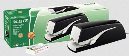 LEITZ Großes elektrisches Heftgerät Nexxt, schwarz Heftleistung: 20 Blatt, verstellbare Einlegetiefe: 10-20 mm (5533-00-95)