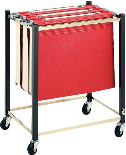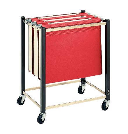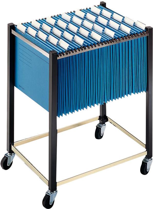 Wahlweise für eine Bahn Hängeregistratur A4 (40 Stück, 0,42 lfm, Abhängung quer) oder A3 (30 Stück, 0,3 lfm, Abhängung längs). Mit beiliegendem Hängeklemmstab für alle Zwischenformate. Mit vier kugelgelagerten Lenkrollen. Lieferung unmontiert.