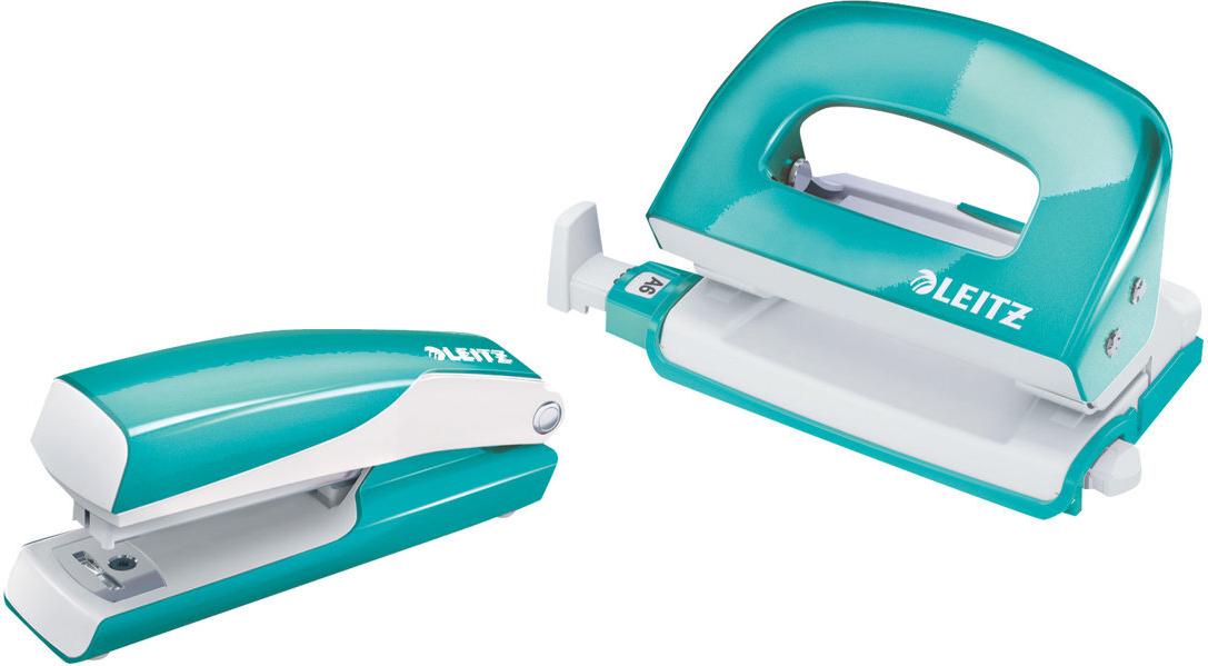 Set aus Mini-Metallheftgerät und -Locher in auffallenden WOW Farben für den Einsatz im Büro, zu Hause oder unterwegs.