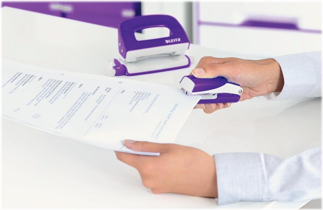 Kleines Metallheftgerät in auffallenden WOW Farben für den Einsatz im Büro, zu Hause oder unterwegs. Handlich und mobil - hat Platz in der kleinsten Federtasche und im Aktenkoffer. Die patentierte Direct Impact Technology und Leitz Power Performance Heftklammern P2 (Nr. 10) garantieren stets eine perfekte Heftung.