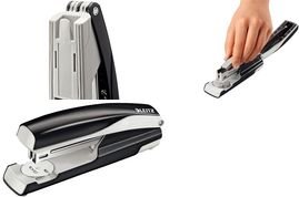Robustes Metallheftgerät mit extra großem Klammermagazin für den täglichen Einsatz. Stabil und zuverlässig. Die patentierte Direct Impact Technology und Leitz Power Performance Heftklammern P3 (24/6, 26/6) und P4 (24/8, 26/8) garantieren stets eine perfekte Heftung.