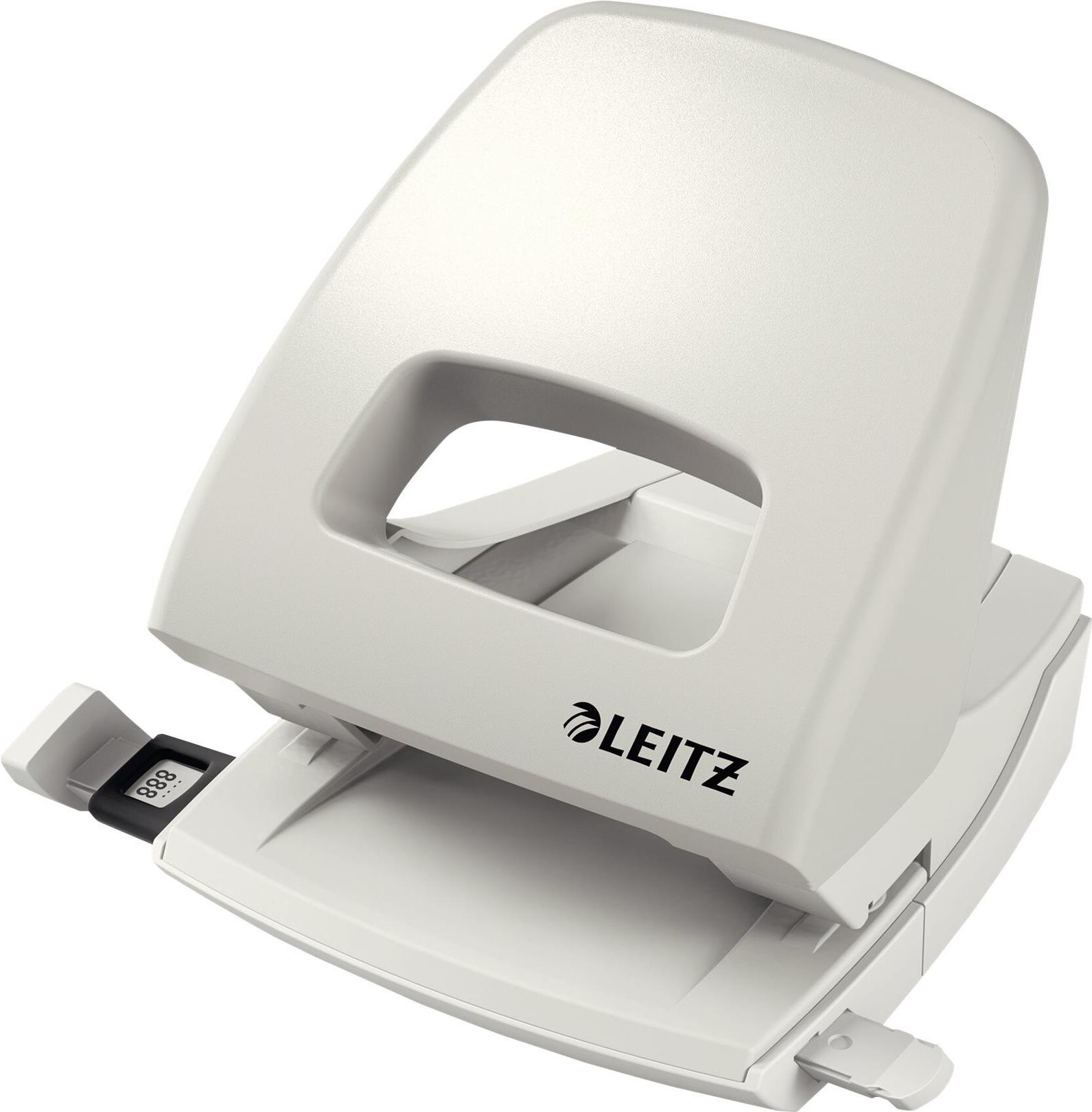 LEITZ Locher Nexxt 5005, Stanzleistung: 25 Blatt, grau Unterteil aus Metall, Kunststoffboden, mit Anschlagschiene (5005-00-85)