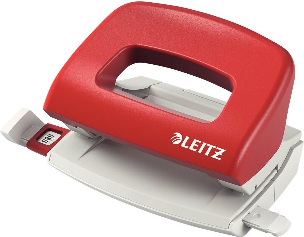 LEITZ Locher Nexxt 5058, Stanzleistung: 10 Blatt, rot Unterteil aus Metall, Kunststoffboden, mit Anschlagschiene (5058-00-25)