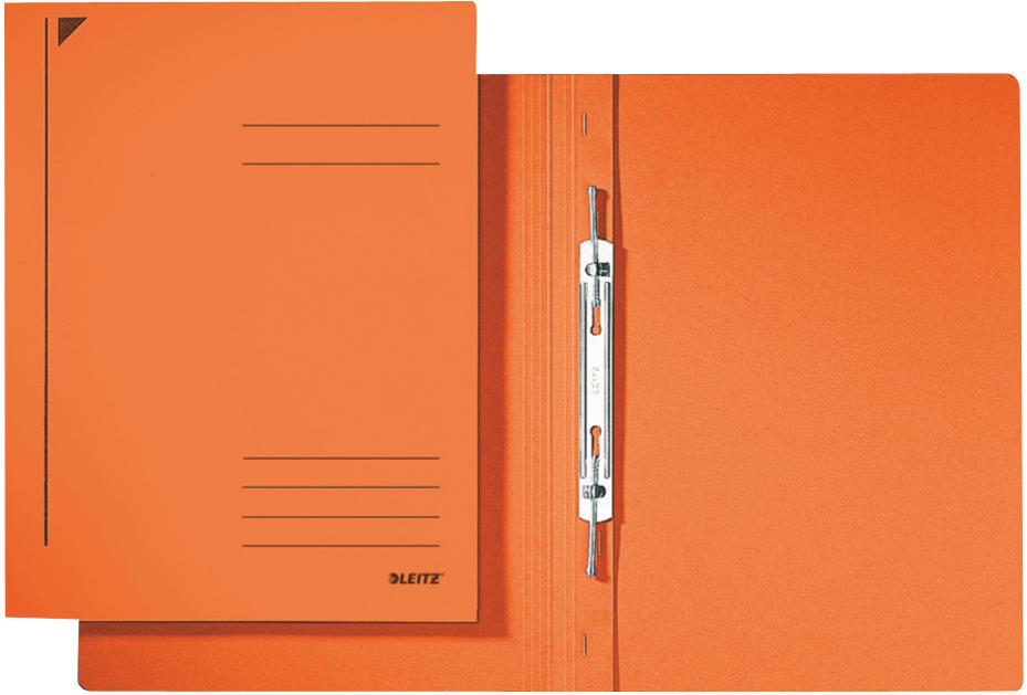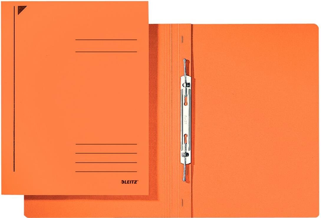 LEITZ Spiralhefter, DIN A4, Colorspankarton, orange 320 g/qm, mit Spiralmechanik 80 mm, mit Beschriftungslinien, Fassungsvermögen: 250 Blatt, für kaufmännische Heftung und Amtsheftung verwendbar, durch Lösen der Hakenleiste können die Spiralen wie ein Buckrücken gebogen werden, Maße: (B)240 x (H)318 mm, gepackt zu 25 Stück (3040-00-45)