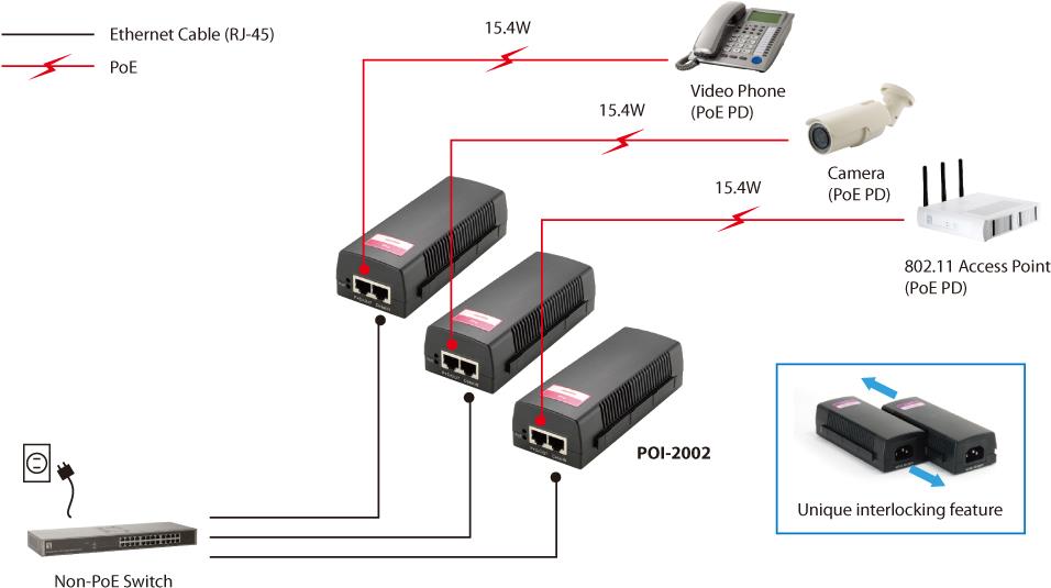 LevelOne POI-2002 - Power Injector - 15.4 Watt |
